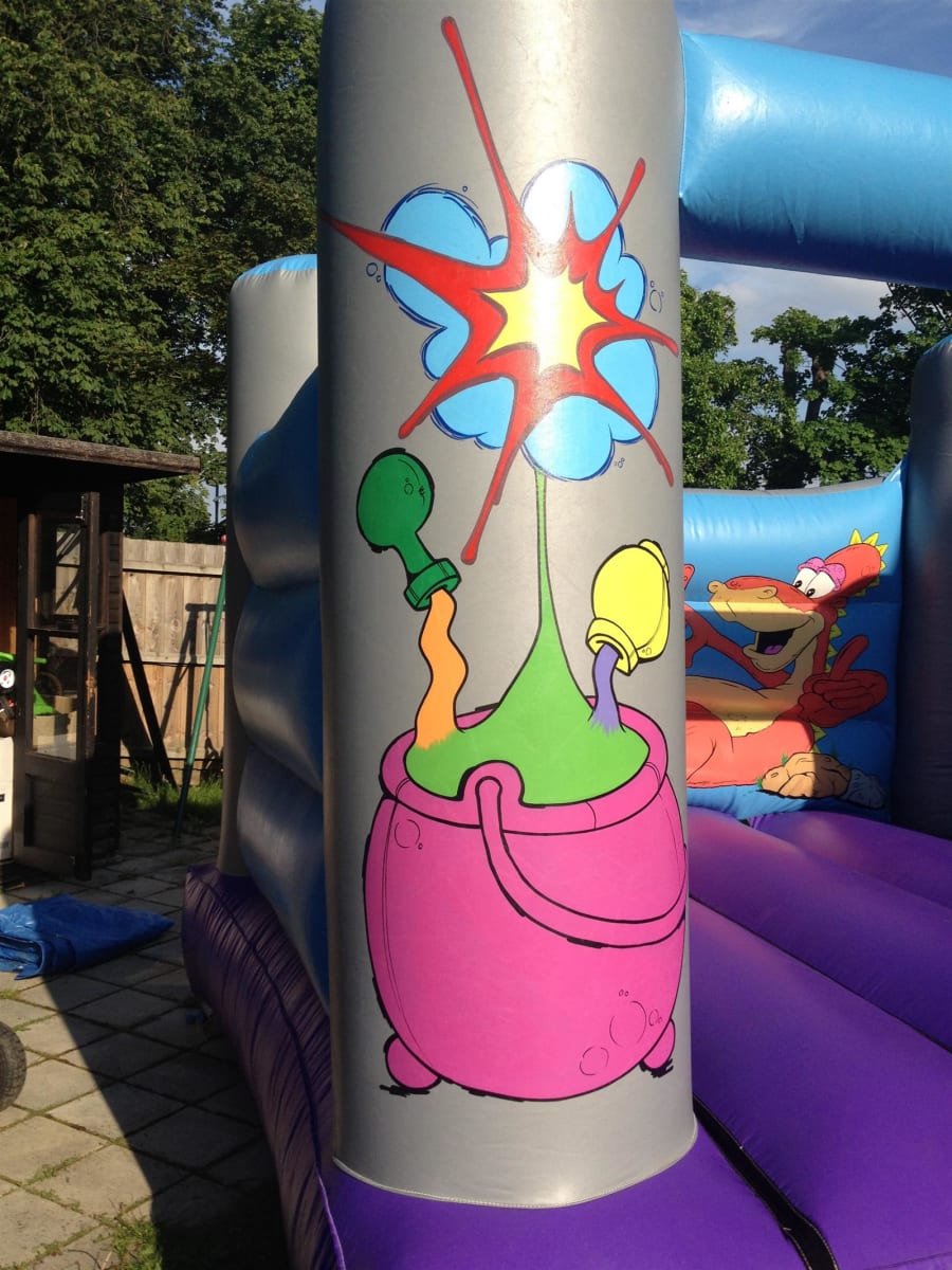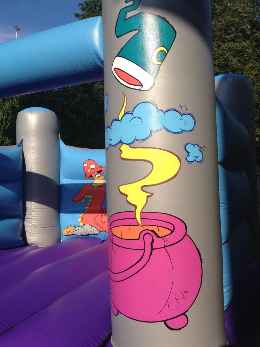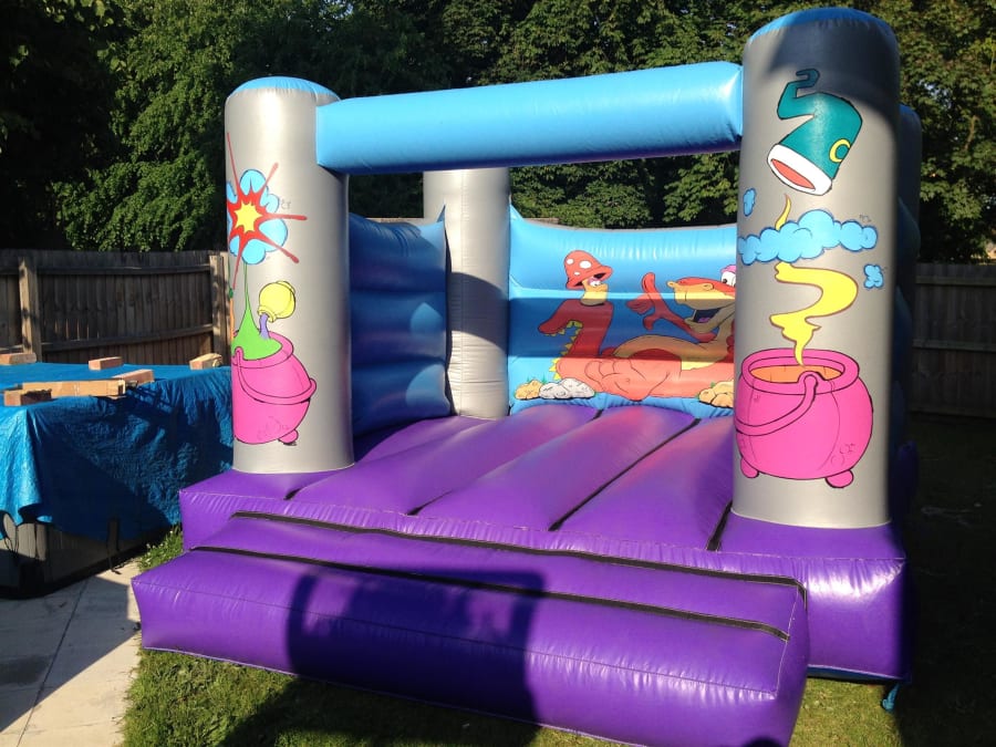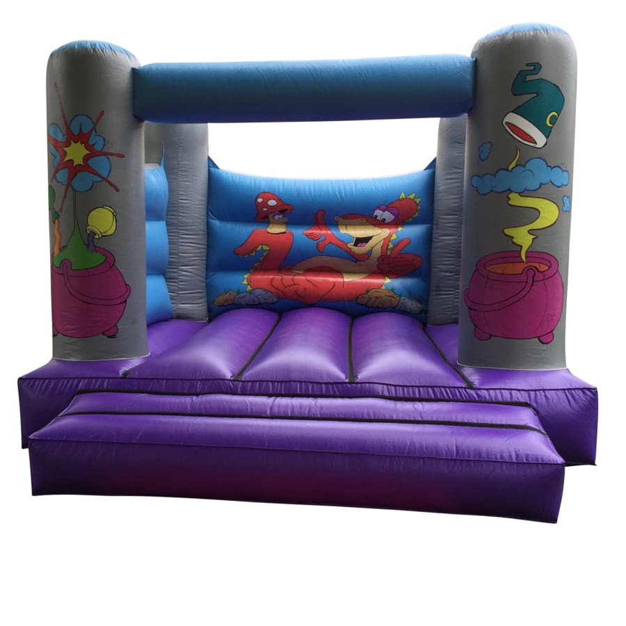 Pictured is our Wizard themed children's bouncy castle which has the added benefit of not being very tall so is perfect for those tighter spaces especially in halls or for those enclosed environments.