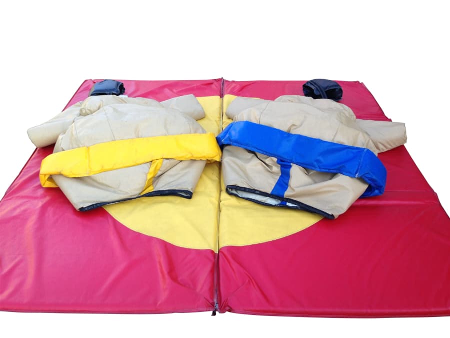 Pictured below are our sumo suits, which are available to hire for indoor and outdoor events. The suits are suitable for children around age 10+ (due to the size of the suits) and adults.